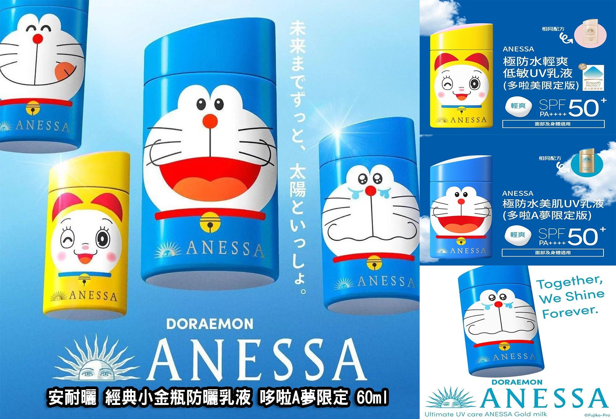 今年安耐曬的限定包裝是跟可愛的「多拉a夢」聯名,分別是