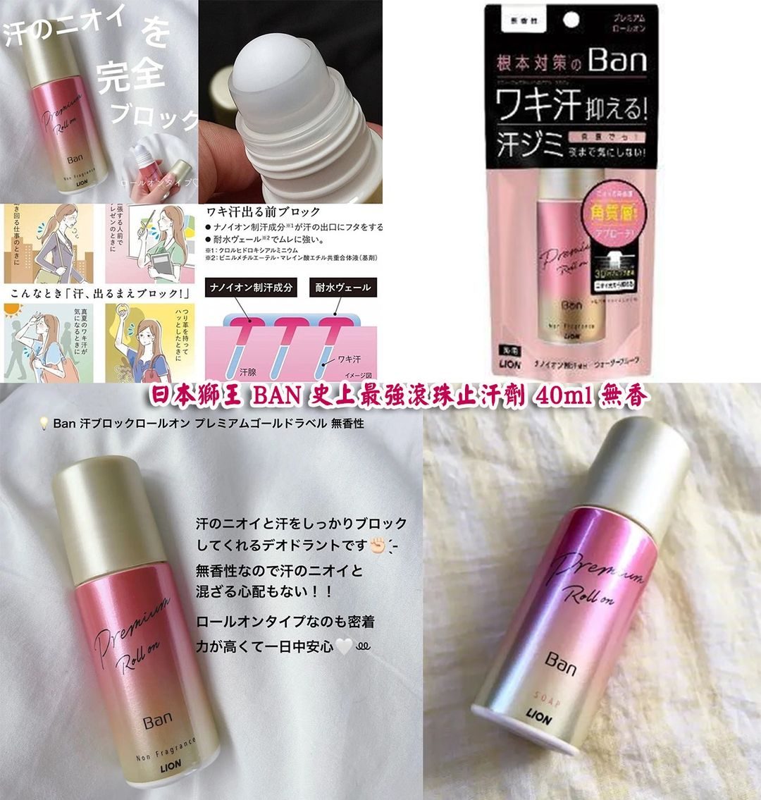 日本獅王 BAN 史上最強滾珠止汗劑 40ml 無香