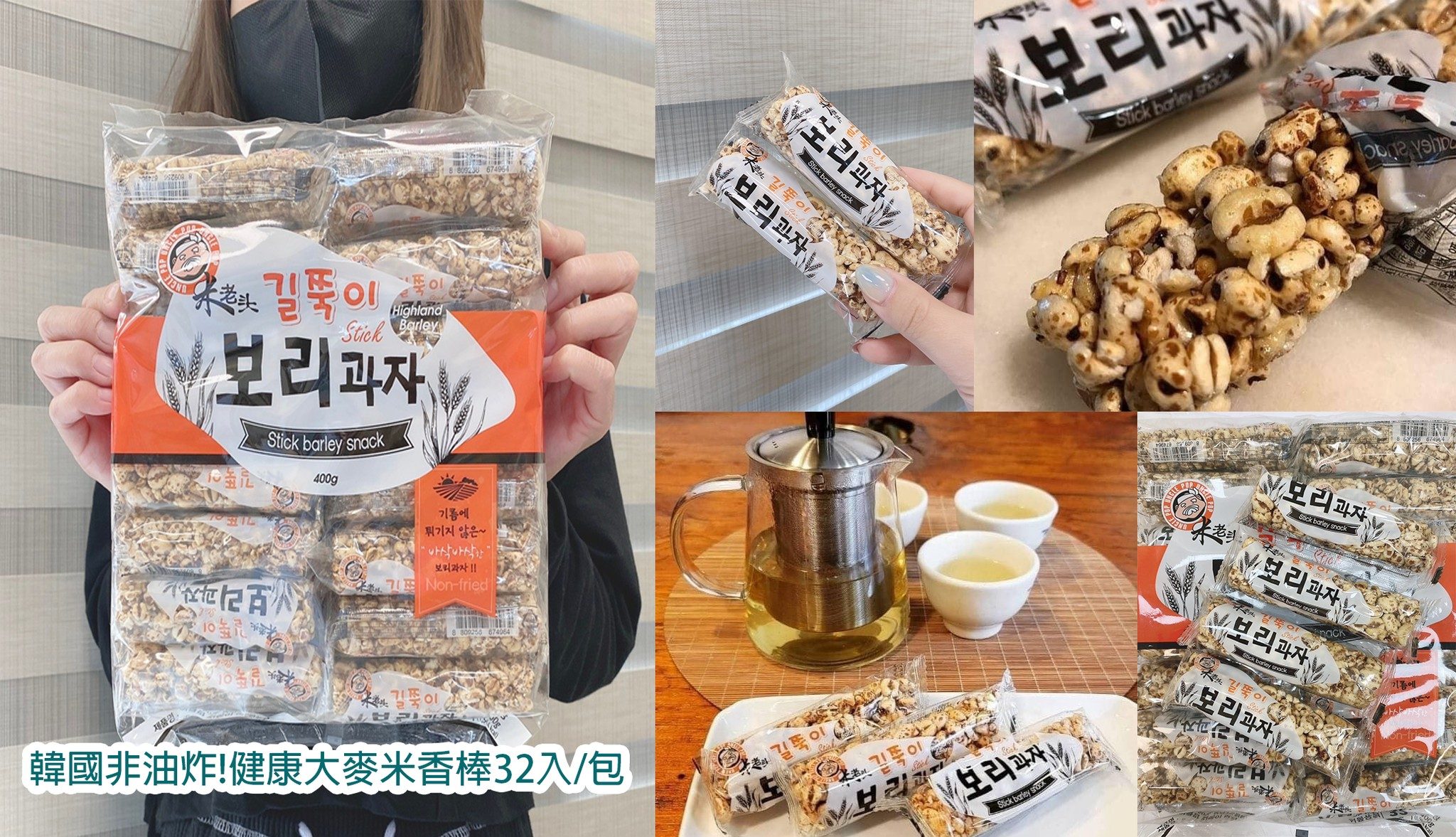 韓國非油炸!健康大麥米香棒32入/包